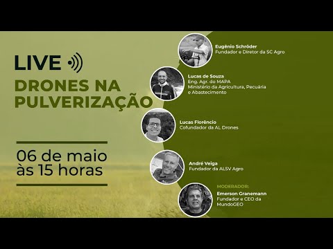 A MundoGEO realizou uma live no dia 6 de maio sobre o uso de Drones na Pulverização, com já teve mais de 730 participantes entre a plataforma de webinar e o canal no YouTube.