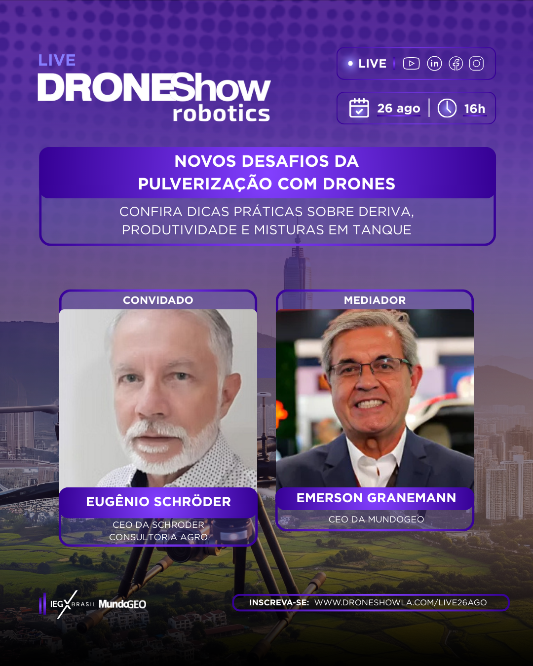 Esta Live foi um ‘aquecimento’ para o DroneShow Robotics 2026, que será realizado de 16 a 18 de junho no Expo Center Norte, em São Paulo (SP). Saiba mais em www.droneshowla.com.
