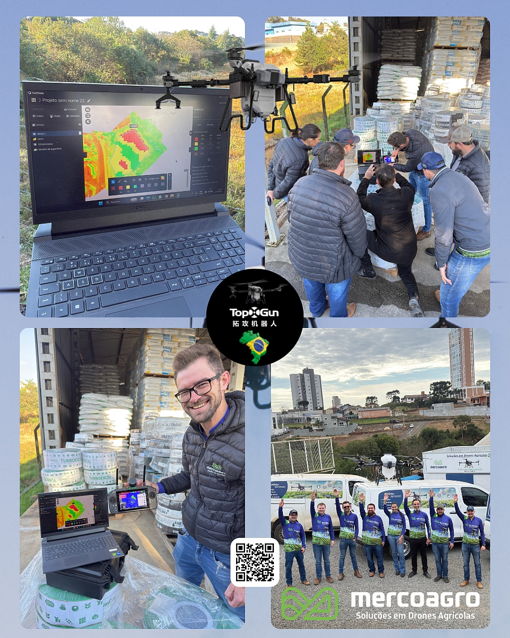 A Mercoagro Drones Agrícolas, distribuidora oficial da marca TopXGun no Brasil e responsável pelo pós-vendas na América Latina, deu início a um amplo programa de treinamentos técnicos e práticos para sua equipe e distribuidores em todo o Brasil e países latino-americanos, após o anúncio da parceria global entre a TopXGun e a Pix4D — uma das líderes mundiais em softwares de mapeamento e agricultura de precisão.