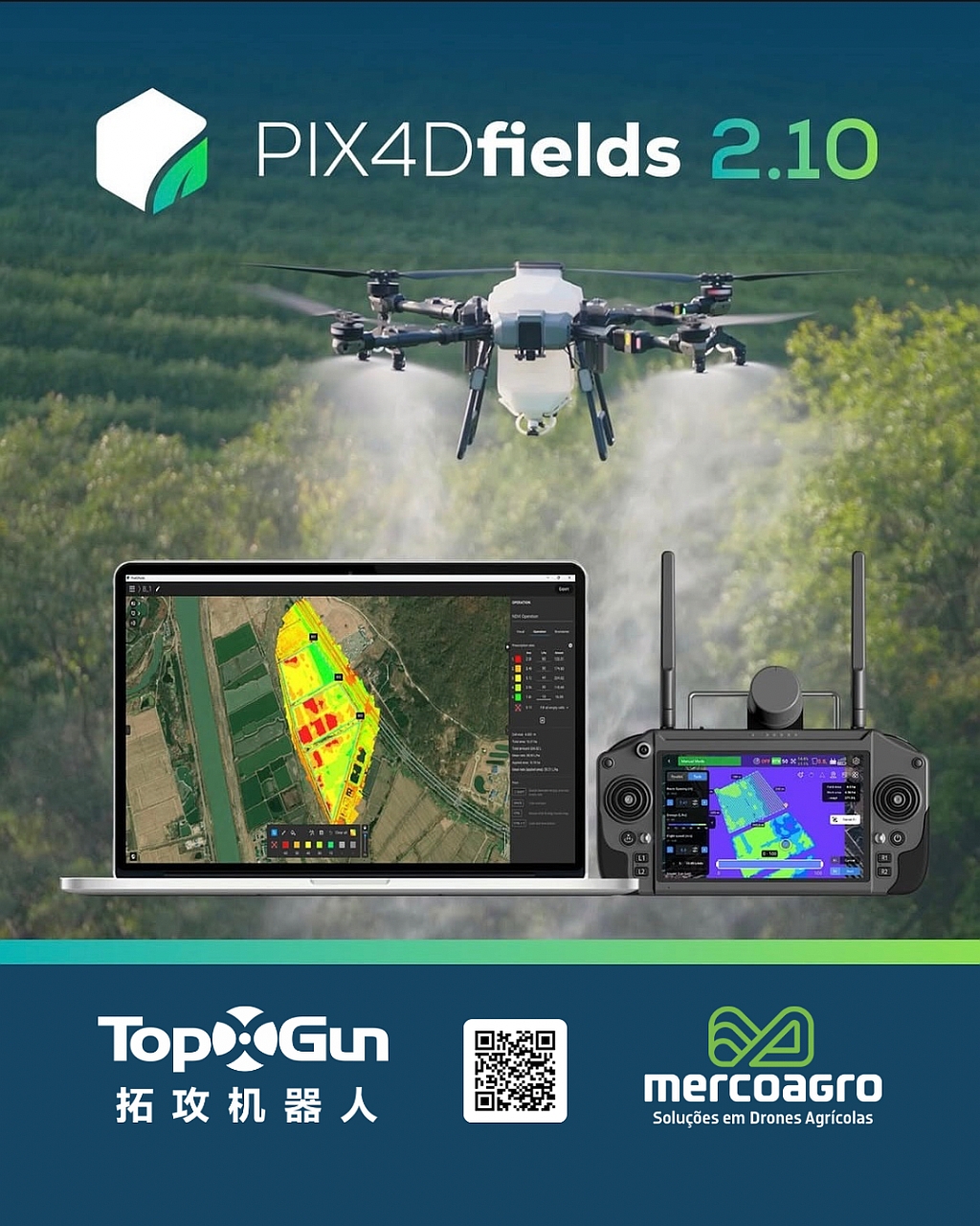 “A Mercoagro tem como compromisso levar tecnologia real e validada aos produtores e revendas do Brasil e América Latina. Com o Pix4Dfields integrado aos drones TopXGun, o agricultor ganha acesso a dados precisos, mapas de aplicação e ferramentas de tomada de decisão que elevam a eficiência operacional no campo”,