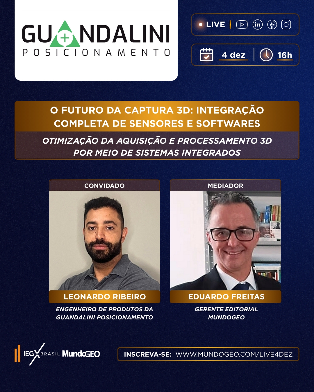 A live sobre O Futuro da Captura 3D – Integração Completa de Sensores e Softwares será realizada em 4 de dezembro às 16h (hora de Brasília), com transmissão no YouTube, Linkedin, Facebook e Instagram.