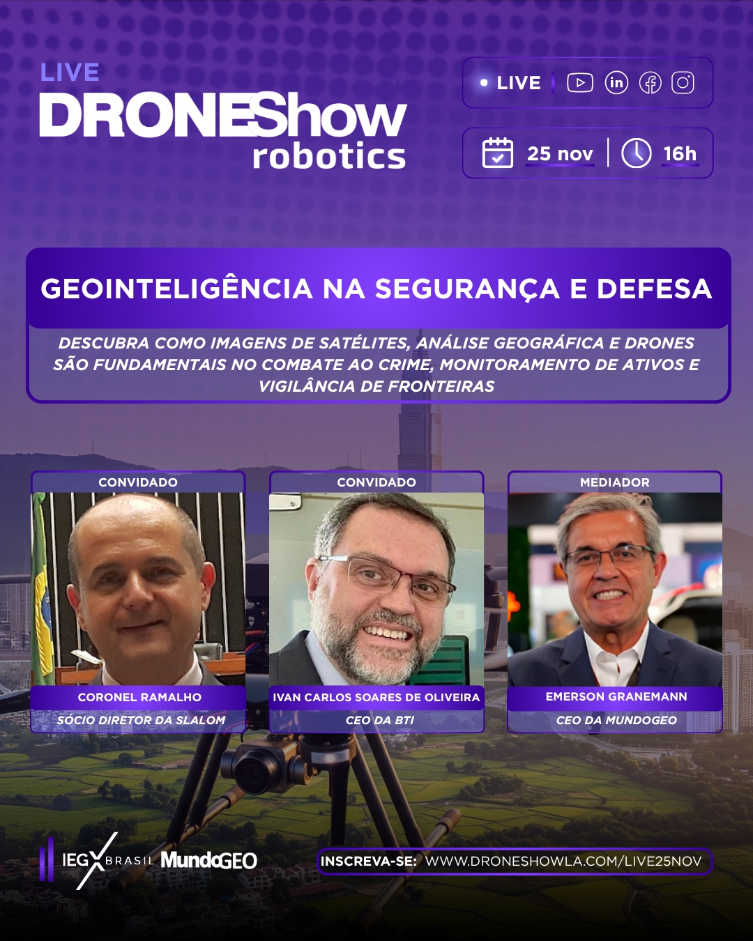 Esta Live foi um ‘aquecimento’ para o MundoGEO Connect e DroneShow 2026, que vão acontecer de 16 a 18 de junho no Expo Center Norte, em São Paulo (SP).