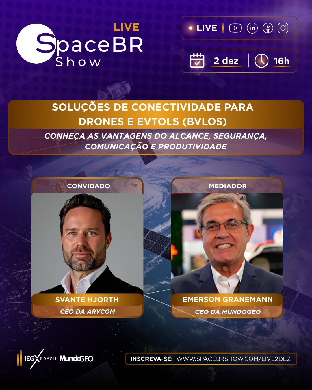 A live sobre Soluções de Conectividade para Drones e eVTOLs (BVLOS) aconteceu na última terça-feira (2/12), com transmissão no YouTube, Linkedin, Facebook e Instagram.