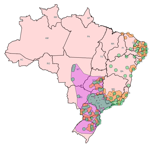 Atualmente, o estado de São Paulo conta com cobertura praticamente total da rede, que possui mais de 130 bases ativas. A expansão segue acelerada para as regiões Sul, Sudeste e Nordeste. Você pode consultar a cobertura atualizada em tempo real através deste link: Mapa de Cobertura Geo+.