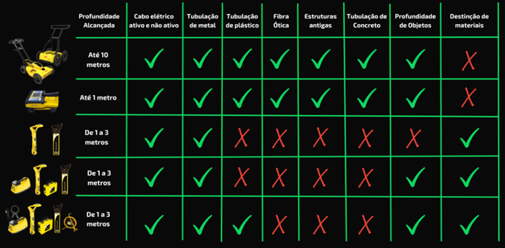 • Identificar tubulações metálicas e não metálicas, cabos elétricos e de telecomunicações;