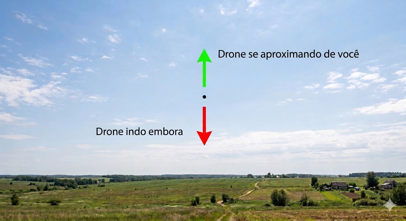 Se o drone aparenta descer em direção ao horizonte, isso significa que ele está se afastando de você. Se ele aparenta subir em relação ao horizonte, isso significa que ele está se aproximando de você.