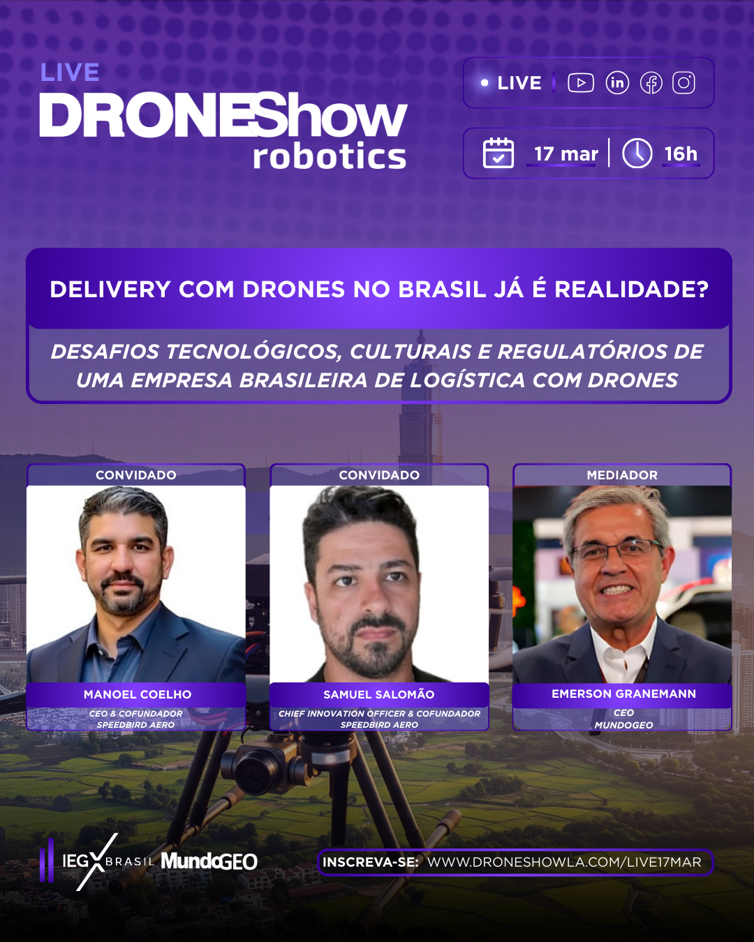 Esta Live fez parte do ‘aquecimento’ para a DroneShow 2026, que vai acontecer de 16 a 18 de junho no Expo Center Norte, em São Paulo (SP).