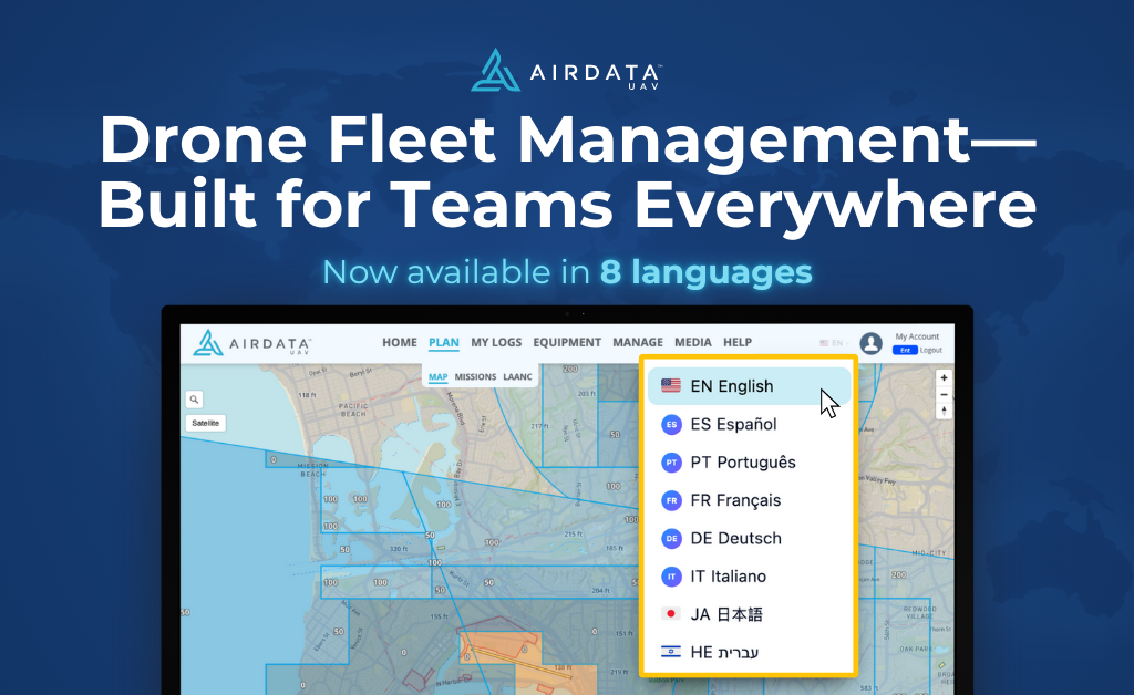 AirData, a drone fleet data management platform used by organizations worldwide, today announced that its platform is now available in eight languages across both the web application and mobile apps. Supported languages include English, Spanish, Portuguese, French, German, Italian, Japanese, and Hebrew.